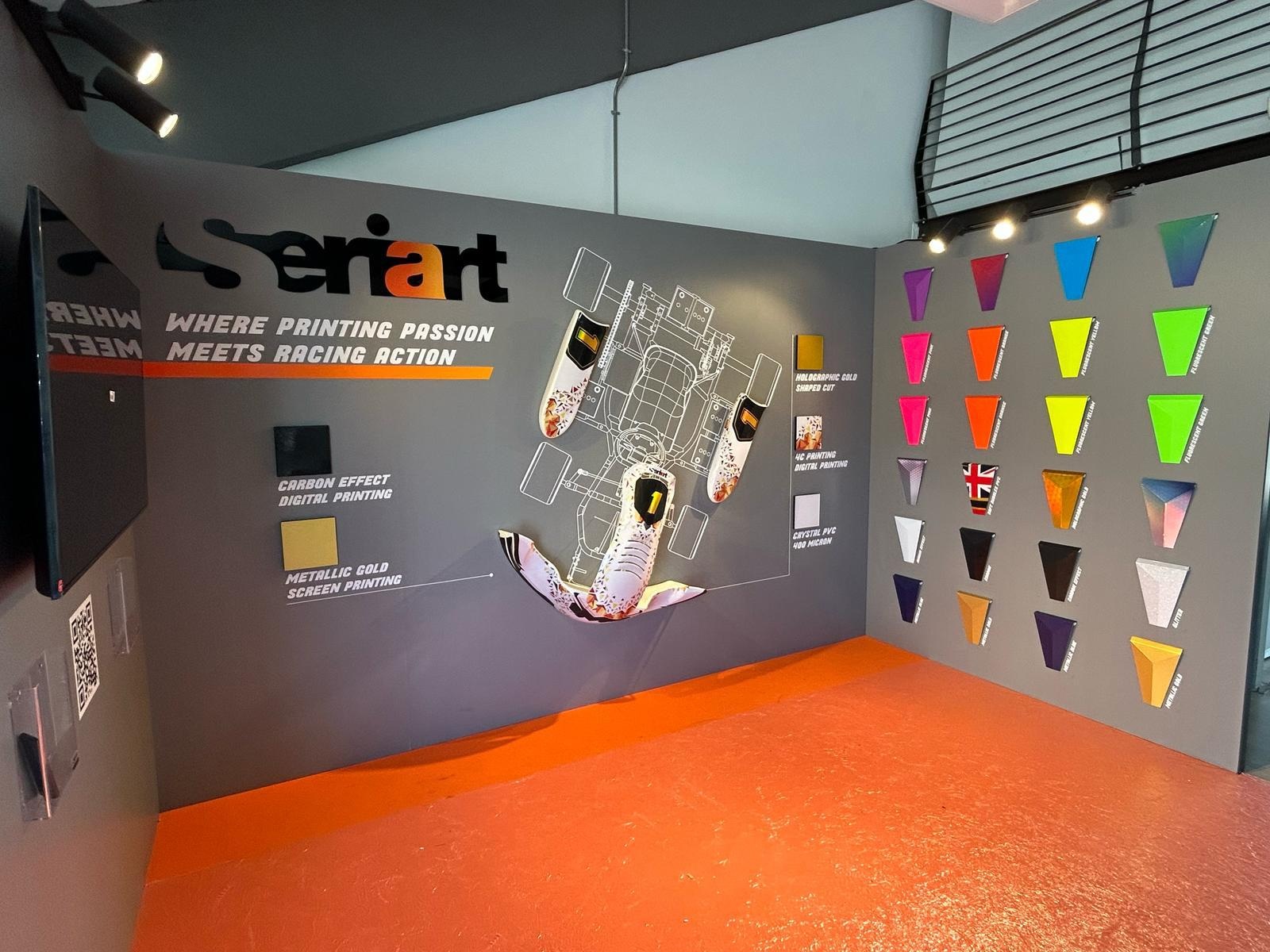 Seri-Art fertigt hochresistente Crystal-Grafikkits, die perfekt auf Kartverkleidungen haften und den typischen Belastungen des Rennsports standhalten. Crystal (PVC mit 300/400 Mykron Stärke) in Kombination mit speziellen doppelseitigen Klebstoffen garantiert maximale Haftung auf Kunststoffen wie Polypropylen und Polyethylen, während Sieb- und Digitaldruck intensive Farben und präzise Details sicherstellen.